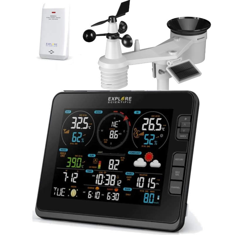 La station WiFi -Explore Scientific- nouveau capteur solaire avec Alarmes UV et LuxMètre (Livré avec 8 piles)